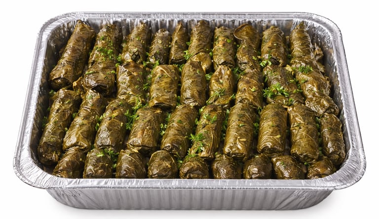 Tender grape leaves delicately stuffed with seasoned rice, ground beef, finely chopped onions, fresh cilantro, rich tomato sauce, and a blend of aromatic spices.