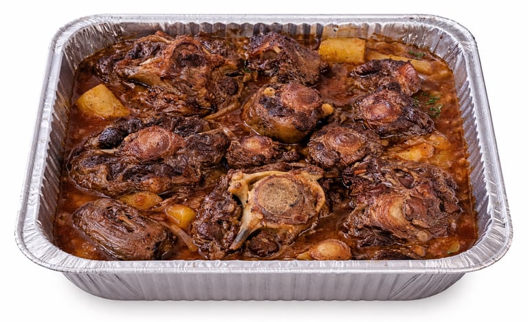 Tender slow-braised oxtail, simmered in a savory tomato sauce with diced potatoes, fresh sliced onions, and green peppers. Infused with aromatic rosemary, a hint of cinnamon stick, and our signature blend of special spices for deep, rich flavor in every bite.