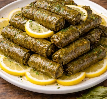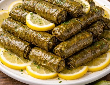 Tender grape leaves delicately stuffed with seasoned rice, ground beef, finely chopped onions, fresh cilantro, rich tomato sauce, and a blend of aromatic spices.