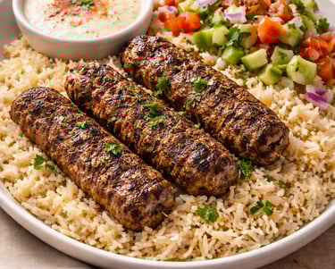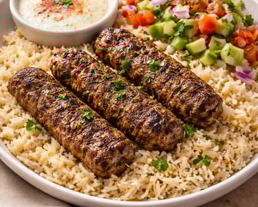 Authentic Egyptian beef and lamb kofta, blended with Chef Youssef’s signature spice mix, served over Rice, with creamy tahini sauce and traditional Egyptian Salata.